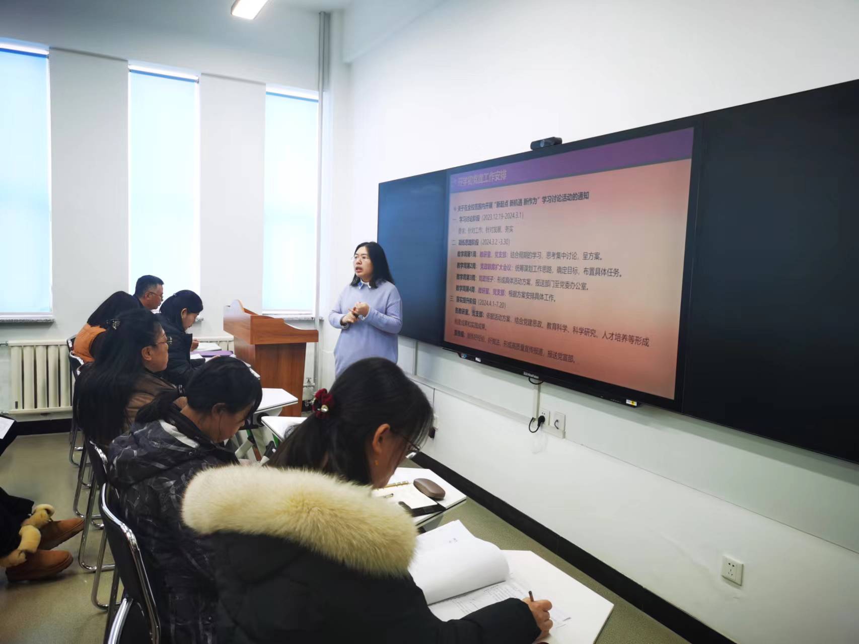 基础部党总支副书记王落茹从深化理论教育、开展“二联三关爱”活动、树立“党建+”理念和开展“新起点+新机遇+新作为”四点安排部署新学期党建工作。