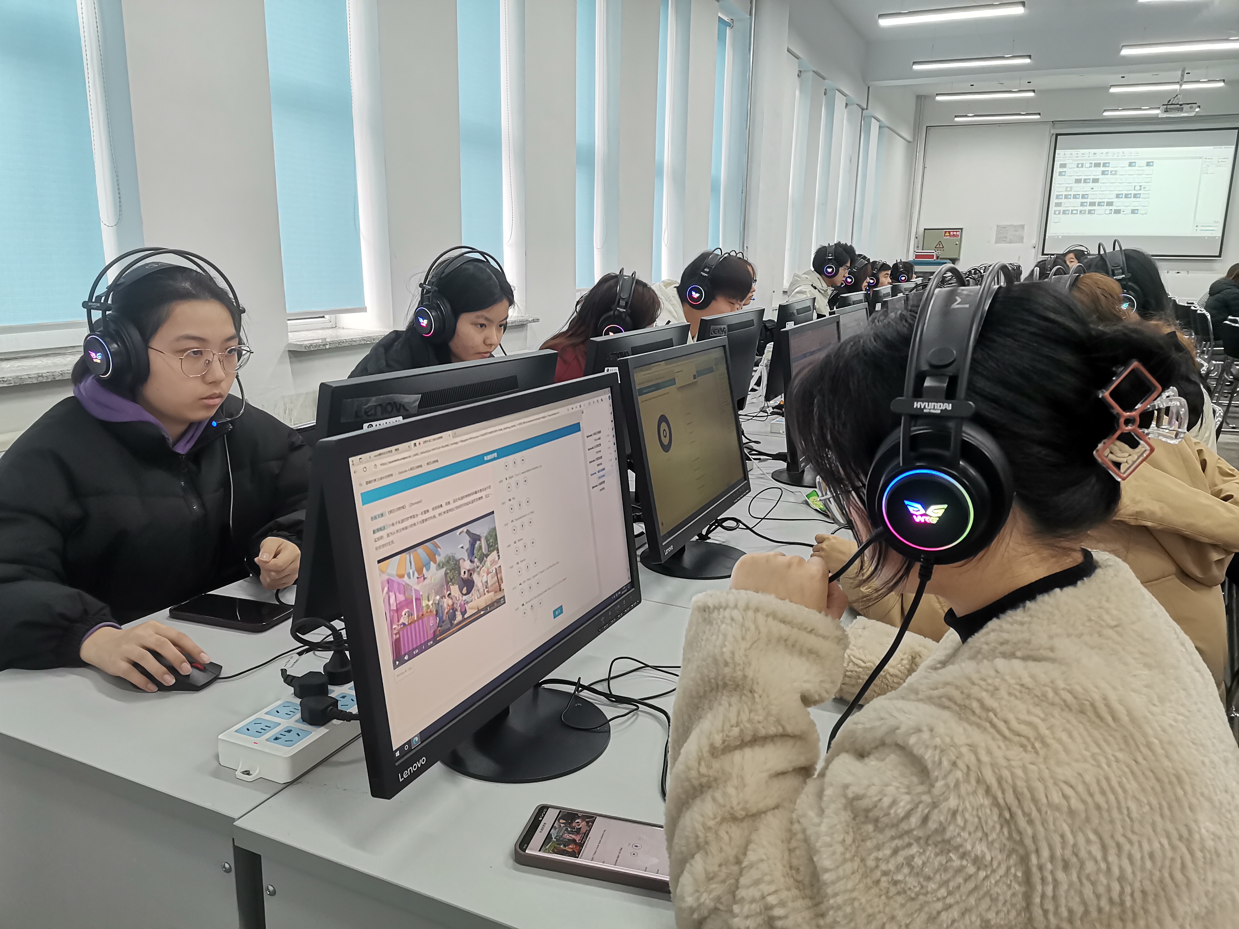 2.在教学过程中,学生能够积极主动地学习,模仿视频及音频中的语音、语调、节奏等,在主动感知的过程中增强语言运用能力,提高英语口语教学效率。教师通过教师机和巡视及时掌握学生的学习情况并加以纠正和指导,体现了“以学生为主体”的教学理念。