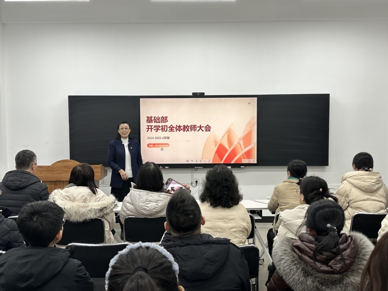 春风送暖,万物复苏。2025年春季学期正式拉开帷幕,师生们满怀憧憬,以崭新的面貌迎接新学期的到来。3月1日上午8:30,基础部在102召开新学期任课教师大会,大会由基础部主任齐洪英主持,共有47名教师(专职和外聘)参会。