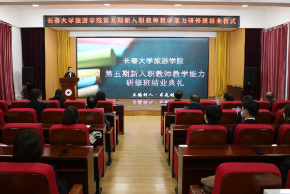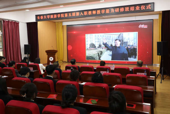4月6日,由教师教学发展中心联合教师工作部、人事处组织的“第五期新入职教师教学能力研修班”结业仪式在学校筑梦报告厅隆重举行。校长助理、教务处处长张家成,校长助理、旅游文化学院院长孙国霞,教师工作部部长许乔木,人事处处长吴慧贤,教学督导贾秋锐,相关教学单位负责人以及第五期“新入职教师教学能力研修班”学员参加结业仪式。仪式由教师教学发展中心主任满歆琦主持。
