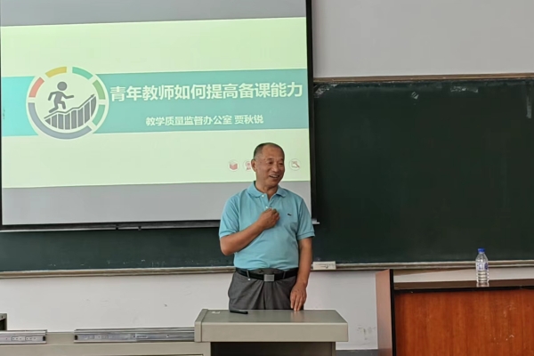 教学质量监督办公室督导贾秋锐进行了“青年教师如何提高备课能力”培训。他从教学能力、备课能力、怎样提高备课能力与青年教师进行分享,鼓励青年教师利用暑假做好第一门课的备课工作。