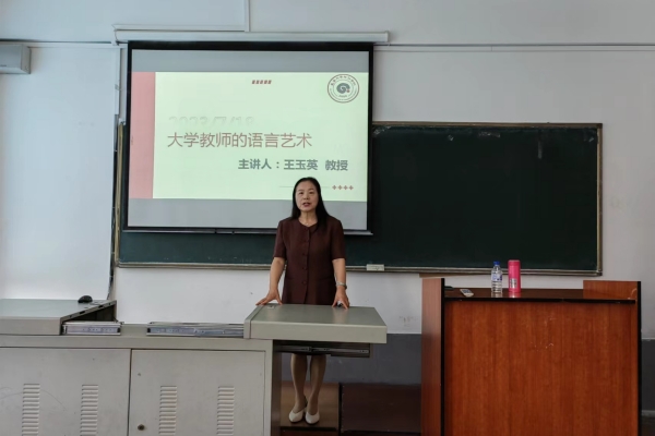 国际交流学院汉语国际教育专业带头人王玉英带来了“大学教师的语言艺术”培训,她从教师的语言艺术、教师的课堂用语、教师用语的话语分析等方面对新入职教师的语言艺术和语言技巧进行指导,勉励各位教师用好教师语言,有效传递知识。