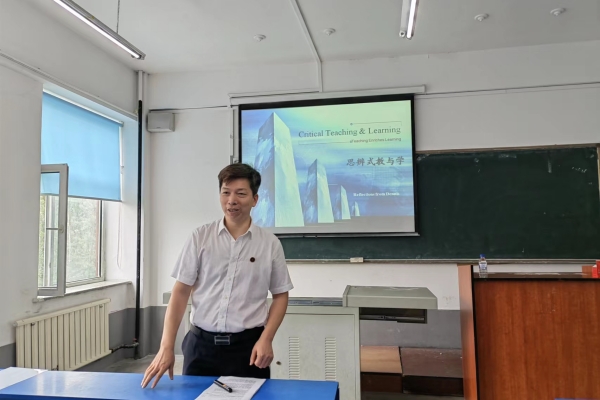 外国语学院副院长许可新为新入职教师准备了“思辨式教与学”培训。他结合自己的外语教学经验,鼓励新入职教师以“思辨”的思维和视角开展教学工作。