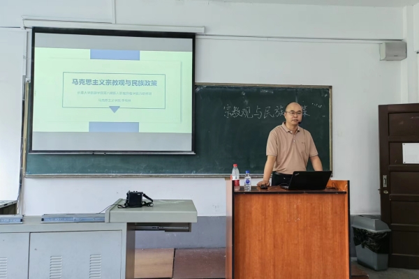 马克思主义学院教师李桂林进行了“马克思主义宗教观与民族政策”培训,他从大学生信教可以入党吗?高校校园内可以传教吗?如何引导已有宗教信仰的学生?我国的宗教信仰政策是什么?我国的民族政策是什么?等问题入手,通过案例分享,引导新入职教师了解我国的民族政策,树立正确的宗教观。