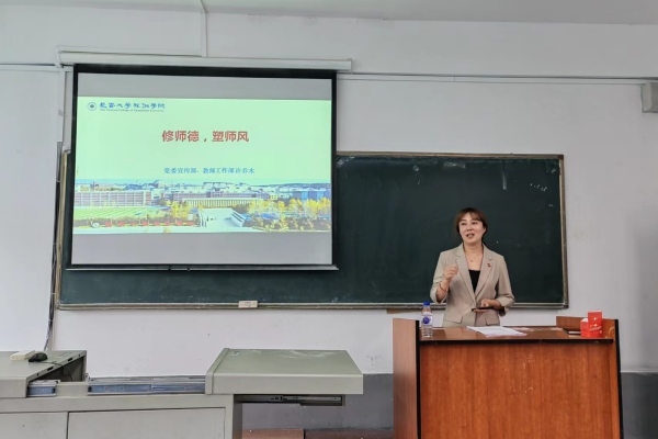 教师工作部部长许乔木以“修师德、塑师风”为题,她从师德的内涵与特点、师德的功能和原则、师德修养和个人道德修养之间的关系、把握《新时代高校教师职业行为十项准则》的基本内涵等方面展开,对新入职教师塑造良好的师德师风进行教育引导。