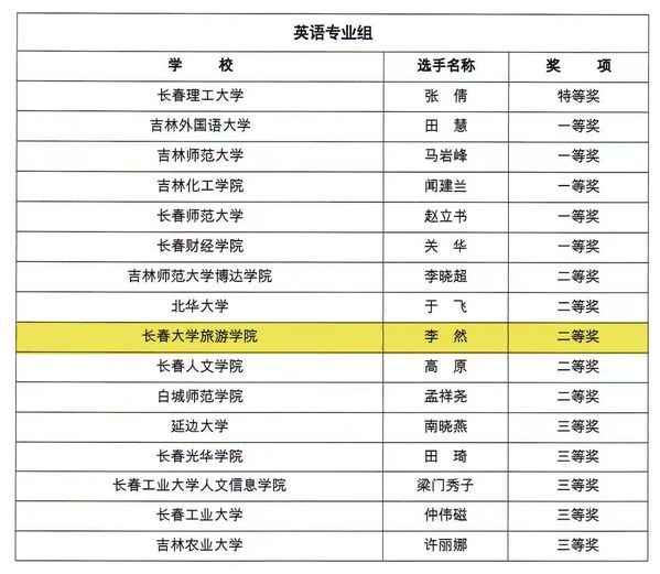 英语专业组获奖名单
