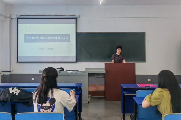 科研处处长魏鹤影向新入职教师介绍“青年教师提升科研能力的方法和途径”。她从什么是科研能力;科研能力提升的重要意义;科研能力提升面临的困境;科研能力提升途径与方法;学校提升青年教师科研能力举措;科研项目和成果的基本知识及规范要求;科研管理系统使用等方面鼓励青年教师积极参与科研工作。