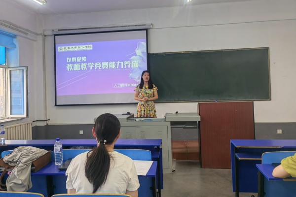 人工智能学院物联网工程专业带头人邹津婷以自己参加教师教学创新大赛的经历为依托,与新入职教师探讨“教师教学竞赛能力的养成”。她从如何组建教学团队、如何做教学设计、如何录制参赛视频、如何做教学反思等方面勉励新入职教师通过参加教学比赛来历练自己的教学能力,提升教学水平。
