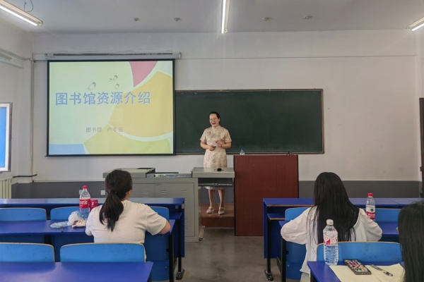 图书馆副馆长卢冬岩为青年教师做“图书馆资源检索”培训,介绍学校图书馆资源情况、馆藏分布和资源检索方式。