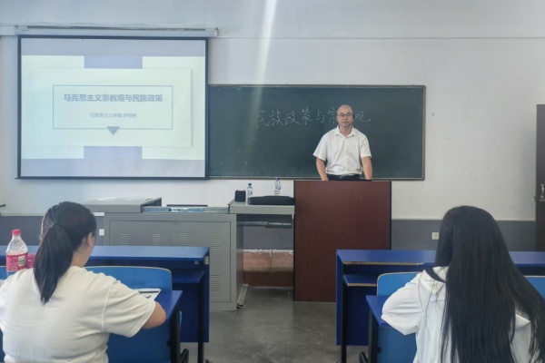 马克思主义学院教师李桂林做“马克思主义宗教观与民族政策”专题讲座,指导青年教师在日常教学工作中从政治高度和学理深度正确处理宗教和民族问题,引导学生树立正确的、崇高的、科学的理想信念。