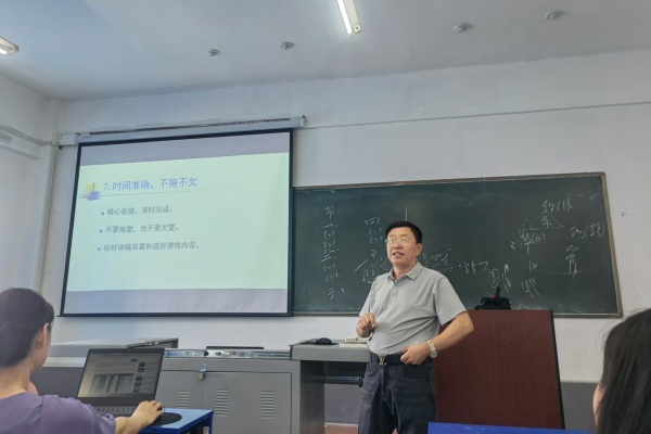 商学院副院长陈守则教授为青年教师做“大学青年教师教学艺术修炼”培训。他结合自己从教40余年的经历,从教学艺术概说;讲好一门课的艺术;课前准备、课中讲解、课后反思的艺术三个方面鼓励新入职教师像对待艺术品一般认真“雕琢”自己的每一门课,认真上好每一节课。