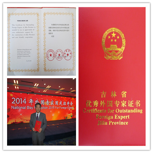 我院韩国籍教师LEE YONGDEUK(中文名:李龙得),在我院从事韩国语教学工作多年,教学经验丰富、教学效果良好、教学方法灵活多样,深受学生的爱戴与好评,经吉林省人民政府外事办公室、吉林省教育厅及吉林省外国专家局审核评定,荣获吉林省2014年度“优秀外国专家”荣誉称号。
