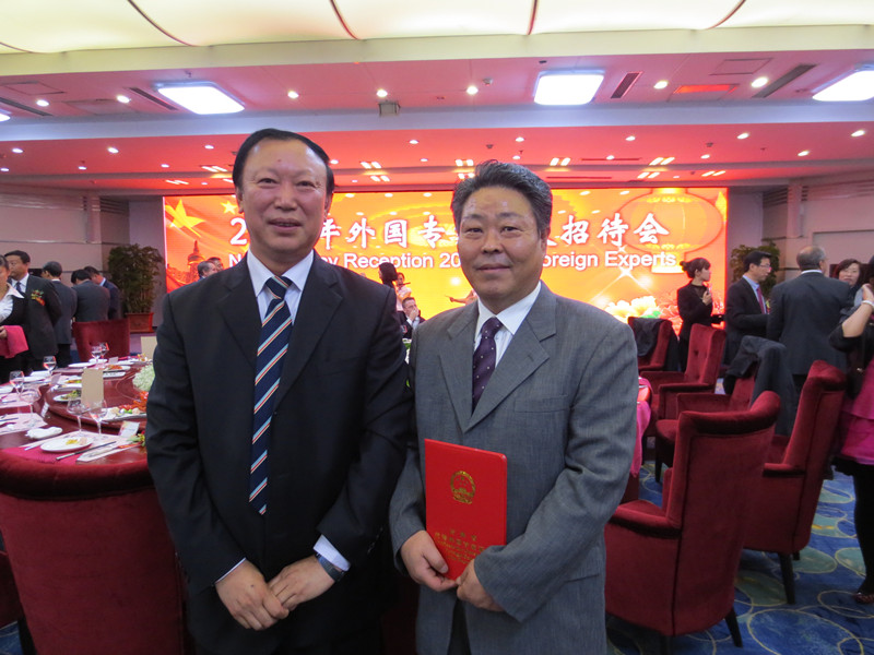 图二 吉林省人力资源和社会保障厅副厅长、省外国专家局局长张延峰与李龙得合影