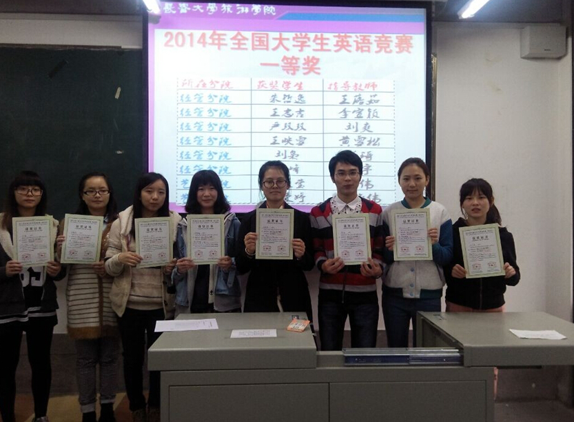 2014年全国大学生英语竞赛已落下帷幕。在学校领导佟成春教授的大力支持下、基础部主任张琦教授的组织下以及全体师生共同努力下,经过激烈的角逐,金沙官网共有C、D级考生70人获奖。其中有8名学生脱颖而出,分获C、D级一等奖。全国大学生英语竞赛是教育部高等学校大学外语教学指导委员会和高等学校大学外语教学会联合举办的全国性的大型赛事。现将本次获奖名单公布如下,希望全体师生在今后的竞赛中再接再厉,再创佳绩!为金沙官网赢得更多的荣誉!