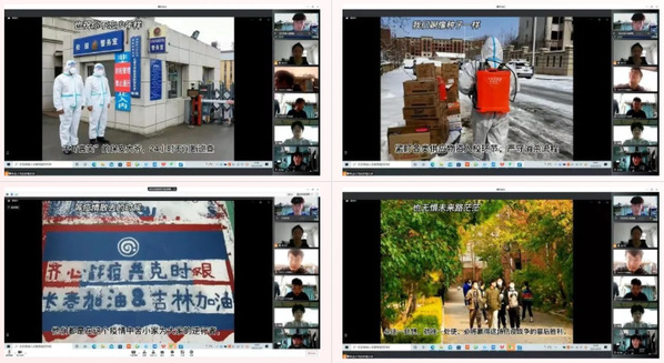 “我看到过很多感人的场面,每次都会泪湿眼眶,但我最想讲的,还是最初疫情爆发时名字响彻大江南北的钟南山院士。”话音刚落,杨鑫同学就立刻开麦要求第一个讲述自己的感动瞬间。“在疫情蔓延封校期间,我看到了许多发生在校园内的感动瞬间,无论是学校领导、老师、公寓阿姨还是保安大爷,他们都是在疫情中舍小家为大家的逆行者, 正因为有他们,我对战胜疫情充满信心。”随后赵晓博同学分享了自己的抗疫感想。