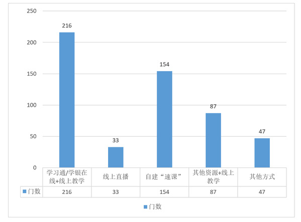 全校教师充分发挥“互联网+教学”的优势,依托超星学习通、学银在线、中国大学MOOC等网络课程教学平台,合理利用微信、QQ、腾讯会议、钉钉等即时通讯软件等工具,形成了学习通/学银在线+线上教学、线上直播、自建“速课”、其他资源+线上教学、其他方式等多种形式的网络课程体系。