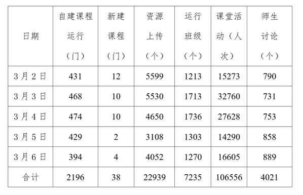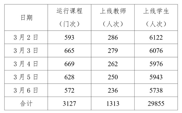 本学期计划开设理论课程550门,其中开设线上课程537门,占比达97.6%。13门课程因不具备网络授课条件,教学单位已申请延期开课,待疫情结束学生返校后采取各种形式进行补课。