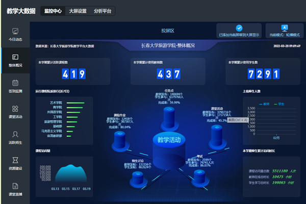 自启动线上教学工作以来,学校共计开课525门,其中公共课46门,专业课479门。在全校师生、各教学单位及教学管理部门共同努力下,确保了学校的线上教学秩序和教学质量同步有序,实现了“质量不减,标准不降”的教学目标。