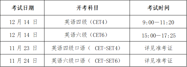 2.CET-SET4、6 打印时间:2024 年 11 月 12 日 9 时起。报名成功的考生登录全国大学英语四、六级考试报名网站(http://cet-bm.neea.edu.cn/)进入“个人中心 ”,下载并打印准考证。