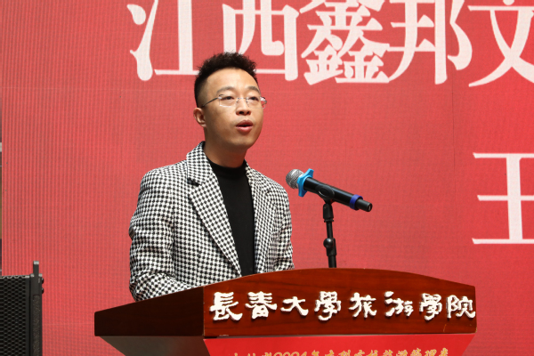 知名文旅企业代表江西鑫邦文旅集团人力总监王政在致辞中深情地回顾了疫情期间长旅与企业共克时艰,成功打造了一批批文旅精英。未来,校企将携手共建合作典范。