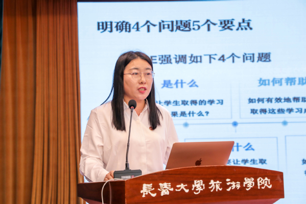 首先,张家成从人才培养方案指导思想设计者视角分享了编制OBE理念指导的人才培养方案设计思想;随后,商学院会计学专业带头人韩道琴、人工智能学院数据科学与大数据技术专业教研室主任梁春达分别从专业带头人和教研室主任的工作视角分享了如何编制OBE理念指导的教学大纲;旅游文化学院旅游管理专业带头人蔡维英、工学院智能建造专业带头人李惠、人工智能学院人工智能专业教研室主任于洋分享了如何进行OBE理念指导的课堂教学设计;最后,教学质量监督办公室督导贾秋锐从教学督导的视角分享了如何就课程目标达成度进行评价和教学持续改进。