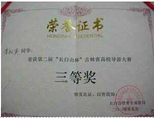 旅游管理分院李秋实荣获第二届“长白山杯”吉林省高校导游大赛三等奖。