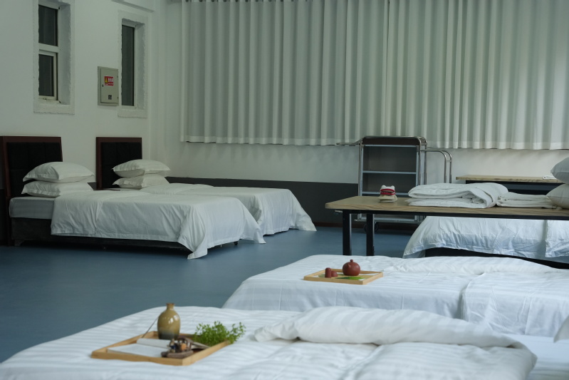 标准客房实训是模拟酒店标准间所建设的。配有单人床2张、茶几1套、行李架1套、电视柜1张、梳妆台1张、床头柜1张等。实训室可同时容纳30名学生进行模拟训练,实训内容涵盖客房引领、客房介绍、客房清洁卫生和客房服务等。