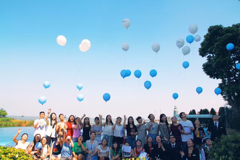 13级旅游管理的同学完成湖州喜来登的实习,欢送泳池派对合照