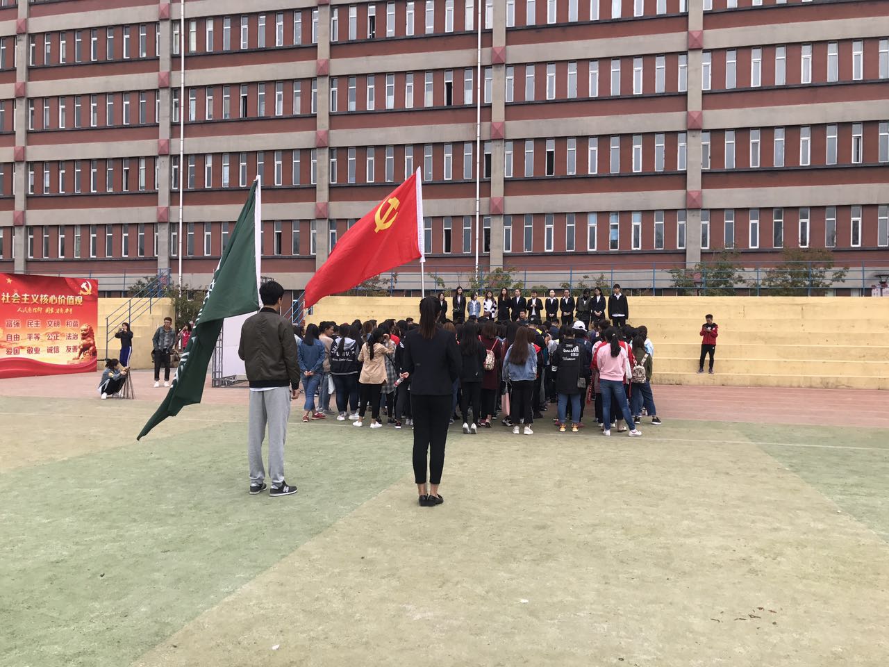 首先由旅游管理学院学生第二党支部党员杜美玲介绍活动相关事宜,并带领旅游管理专业2017级新生庄严宣誓,随着“我有奉献爱心的意愿,我有面对困难的勇气,我有实践创新的能力,我有美化环境的行动”誓言的宣读,美化校园活动正式开始。