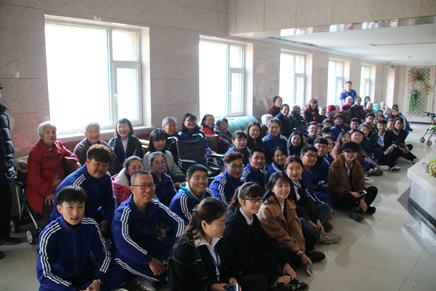 图2:志愿者想起家人潸然泪下志愿者们准备了精彩的相声表演‘三口绝’、精彩歌舞等,为老人献上了精彩的慰问演出。表演结束后志愿者们陪老人打台球、下象棋。