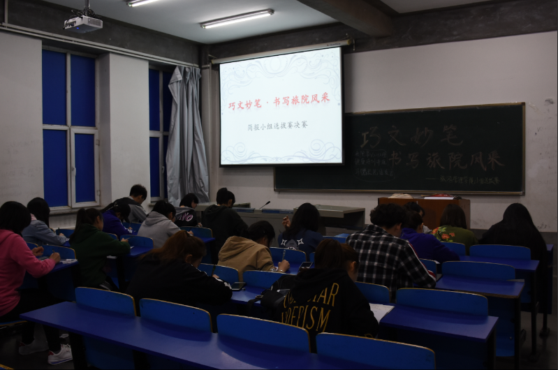 本次“巧文妙笔·书写旅院风采”选拔大赛,旨在提高我院学子对活动简报的书写能力以及对时事新闻的敏锐度。通过选手们专注地“听”、自信地“说”以及认眞地“写”,将自己的思想与情感注入进笔尖,让我们在字里行间中体会到新闻的价值与文字的魅力。 本次大赛的结果将于本周五公布,敬请期待。