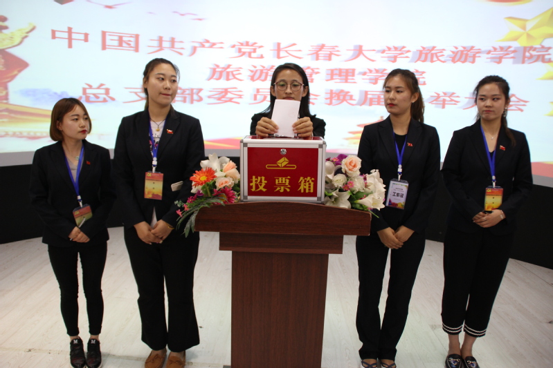 中共6165cc金沙总站检测中心旅游管理学院总支部委员会换届选举大会最终在国际歌中结束。全院师生表示要在新一届党总支委员会的带领下,齐心协力,不断进取,创新工作,再铸辉煌。