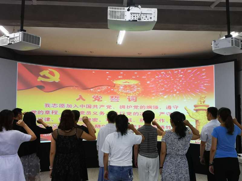 宣誓仪式前,教职工党部支书记王伟光同志详细介绍了中国共产党入党誓词的历史沿革及红军时期、抗日战争时期、解放战争时期、建国初期及中共十二大后等五个时期入党誓词的具体内容。通过回顾入党誓词的历史沿革,指出党员面向党旗进行入党宣誓,重温入党誓词,是加强党员教育和党员自我教育的重要途径,是党员检视对党履行承诺、强化党员身份认同和党组织的凝聚力的重要形式。面对党旗重温入党誓词,更是在新时代坚定党员自愿承担政治责任和组织责任的决心、进一步强化党员党的意识、宗旨意识、政治意识、大局意识、核心意识和看齐意识的需要,是主题党日活动的重要内容。 全体教职工党员面向党旗庄严宣誓。最后,全体党员表态,入党誓词就是我们每个党员对党组织作出的庄严承诺,每个党员都要把这种承诺转化成为党、爱党、忧党、护党的实际行动,积极进去,努力奋斗,为党的事业奉献一切。