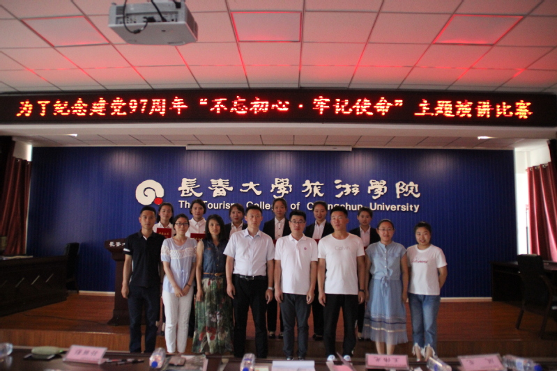 为了纪念建党97周年,进一步深入学习贯彻党的十九大精神,着力增强我院学风建设的凝聚力与战斗力,2018年7月2日旅游管理学院党总支组织开展了“不忘初心·牢记使命”主题演讲比赛。旅游管理学院党总支书记凤龙、学院办公室主任、教工党支部书记王伟光、院团委书记、学生第一党支部书记孙丽影、学生第二党支部书记魏娇、各辅导员老师以及部分学生干部参会。