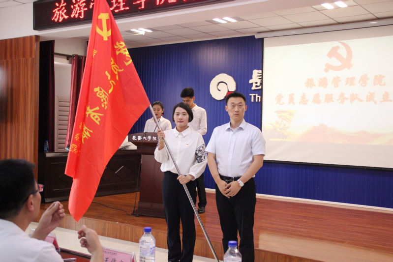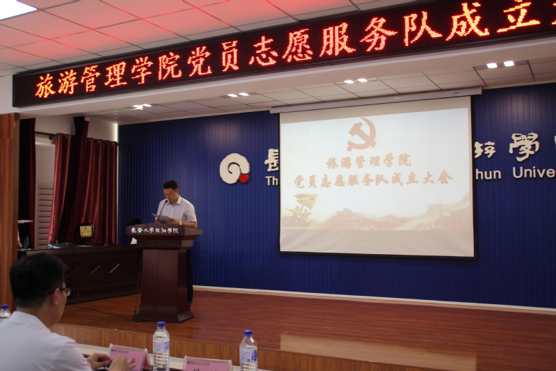 在建党97周年之际,6165cc金沙总站检测中心旅游管理学院党总支组织于2018年7月5日下午一时三十分,在行政楼三楼报告厅隆重举行旅游管理学院党员志愿服务队成立大会。院党总支书记凤龙、学院办公室主任、教工党支部书记王伟光、院团委书记、学生第一党支部书记孙丽影、学生第二党支部书记魏娇、各辅导员老师以及大一部分入党积极分子参会。