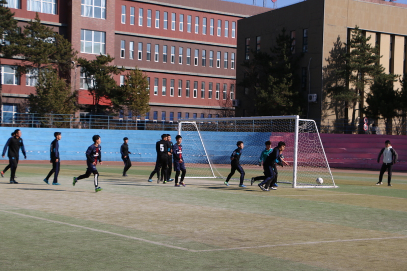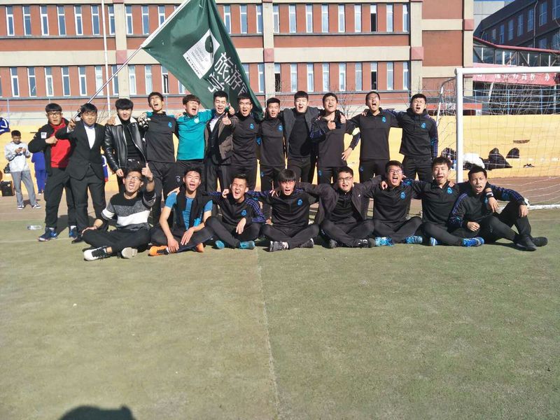 今天中午,旅游管理学院与商学院在足球场进行了紧张而又激烈的晋级赛,天气已寒,但战火重燃,球员们热情高涨,我院拉拉队在一旁为球员们呐喊助威。