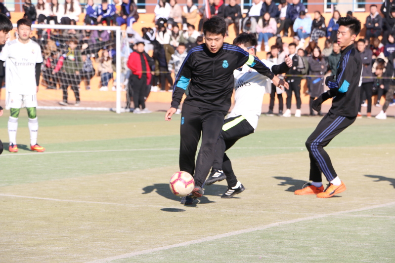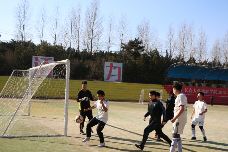 比赛开始前,队员们做好热身,摆开了阵势,斗志昂扬。哨声响起,双方球员势均力敌,滴水不漏的防守都给对方的进攻造成了压力,寒风凛冽抵挡不了同学们的热情,比赛中他们仿佛忘记了寒冷,一路先前,奋力拼搏,尽情的挥洒着汗水。同学们高声呐喊着“旅游无敌,所向披靡”的口号,在赛场上你们的背后永远有我们,旅游旅游,我们为你加油!