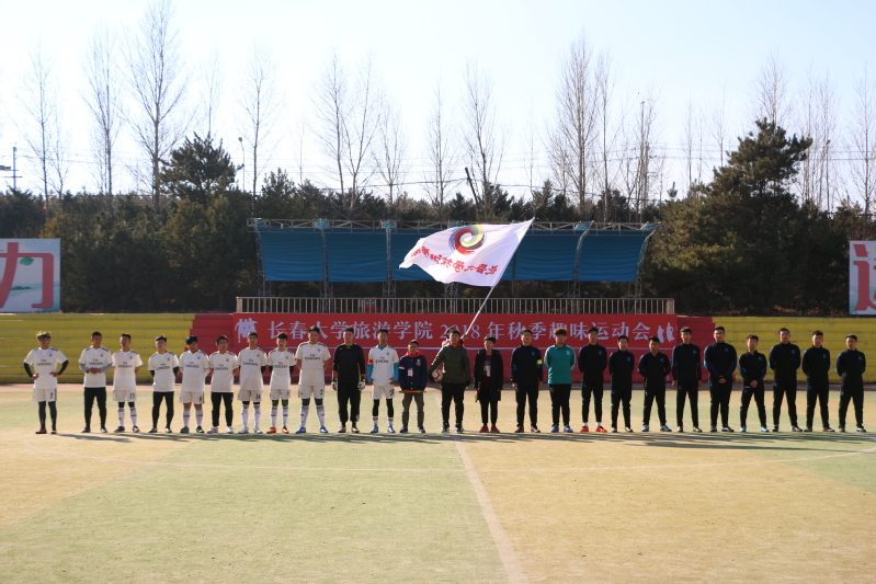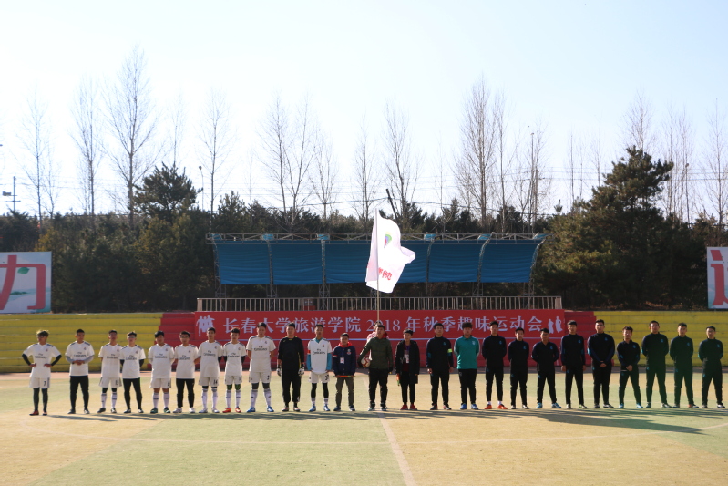 为发展体育运动,增强学生体质,缔造阳光校园,促进和谐发展。金沙官网足球赛决赛于2018年11月12日中午正式打响。经过上一周绿茵场上激烈的角逐,旅游管理学院和艺术学院成功站到了决赛的赛场上。我院团委书记蒋森、辅导员李双老师和国宝钰老师也到场为队员们助威。此外,还有我院的团学组织学生干部以及全体大一新生到场为队员加油。