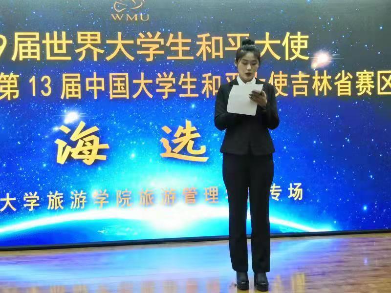 为提升高校大学生的综合素质,展示高校大学生的风采,选拔德,智,体,美,劳全面发展的优秀女大学生参加世界大学生和平大使国家及世界选拔赛。特此第29届世界大学生和平大使暨“建行杯”第13届中国大学生和平大使吉林省赛区选拔赛,于11月13日在金沙官网教学楼247教室隆重举行。旅游管理学院团委书记蒋森,世界大学生和平大使6165cc金沙总站检测中心组委会各成员,以及部分学生干部到场出席了本次活动。