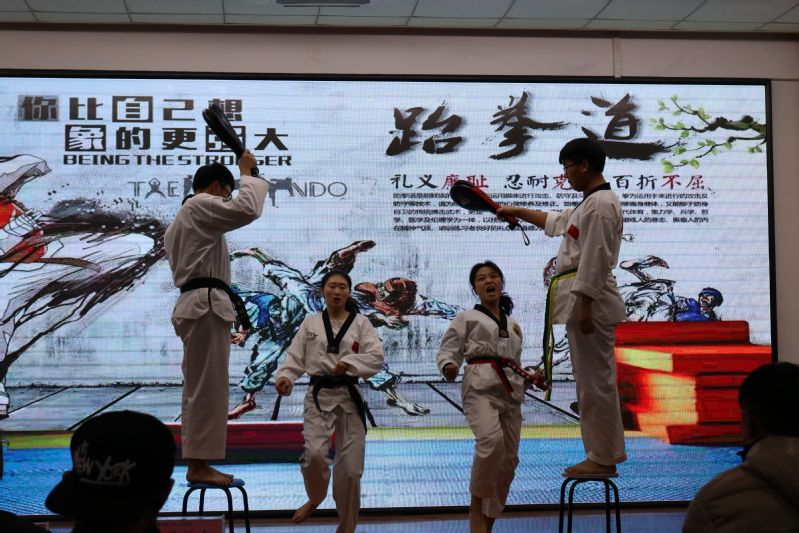 活动当天,参加本次展演的各个社团纷纷展示了自己社团积极良好的精神风貌,各种元素交相辉映,组成了这样一组精彩绝伦的视听盛宴。文化类社团有文学社、心理社、书画社以及动漫社;运动类社团有跆拳道社、综合格斗社、执滑板社;艺术类社团有音乐社街舞社。参与活动的社团共有14个,短短一个多小时的表演时间,让我们看到了街舞社的青春和活力,快速流畅的舞步伴以重鼓与电音以及多种乐器交杂的舞曲,令人叹为观止。书法社秀外慧中,潇洒飘逸的书画展示让我们感受到中国文化的博大精深。活动的最后由跆拳道社团带来表演《跆拳风采》,旋转,跳跃,击破...一系列动作一气呵成,在观众们的一片喝彩中,本次活动展演圆满成功。