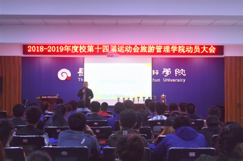 桃杏争春柳先知,万木翠绿香满园。在这春暖花开、阳光明媚的季节里,2018-2019年度第十四届校运动会即将召开。为增强学院全体师生凝聚力,激发全体运动员的竞技斗志,旅游管理学院于4月23日下午在金沙官网行政楼三楼会议室举办了运动会动员大会。