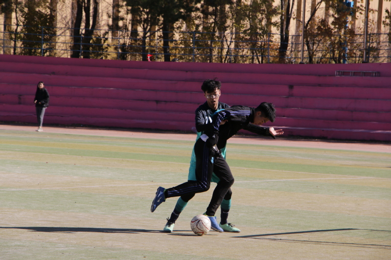 在这场比赛当中。旅游管理学院球员的默契配合以及坚持不懈的精神,使同学们领略了足球风采的同时,更读懂了默契是彼此间的信任,而坚持则是一种人格信仰。