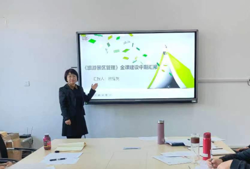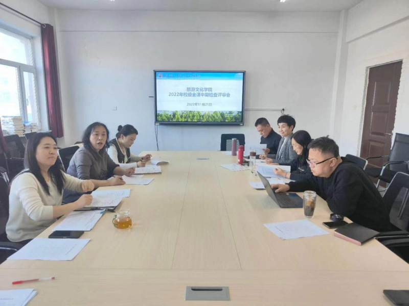 为掌握学院校级“金课”建设进展情况,进一步加强课程建设,按学校相关工作部署要求,旅游文化学院于11月21日在综合楼211会议室组织2022年校级金课中期检查。由副院长周丽君、、旅游管理专业带头人杨絮飞、酒店管理专业带头人杨春梅、文化管理专业带头人张春城组成的专家组对课程进行了检查,院长孙国霞全程参与指导和评议。会议由周丽君副院长主持。
