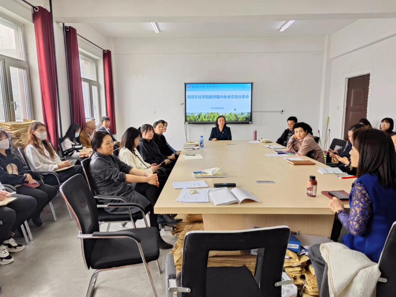 第二个阶段是孙国霞院长和蔡维英老师分享参加“教育部旅游管理类专业教学指导委员会2023年工作会议暨课程思政培训会”心得。