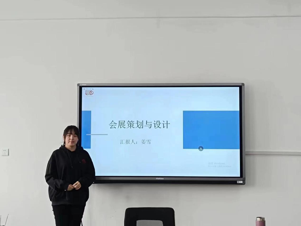 姜雪老师介绍了《会展策划与设计》课程。该课程拟打造以“课程思政贯穿主线、以会展行业人才需求为引导”的金课。线上由授课教师录制相关课程上传平台,实现“课前-课中-课后”三者的无缝对接,调动学生的积极性;线下与校企合作建设课程,该模式实现实际项目对接,加强实践策划能力。