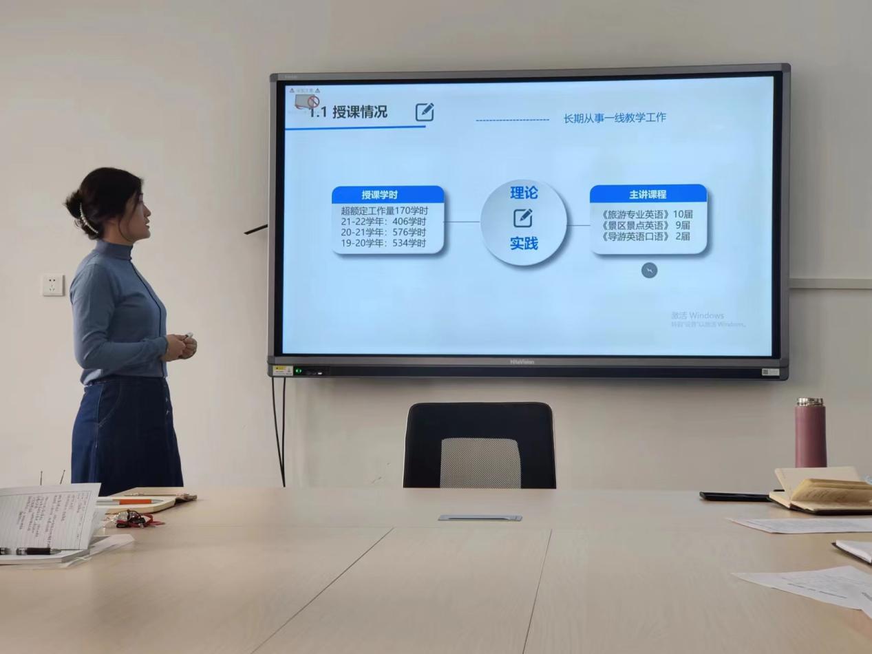 周丽君老师介绍了《旅游规划与开发》的建设思路,以旅游规划与开发的实践流程设置课程模块,以相关政策学习和融入体现课程思政,以实践技能为课程考核指标,以线上线下融合为教学路径,将本课程建设成为校级金课。