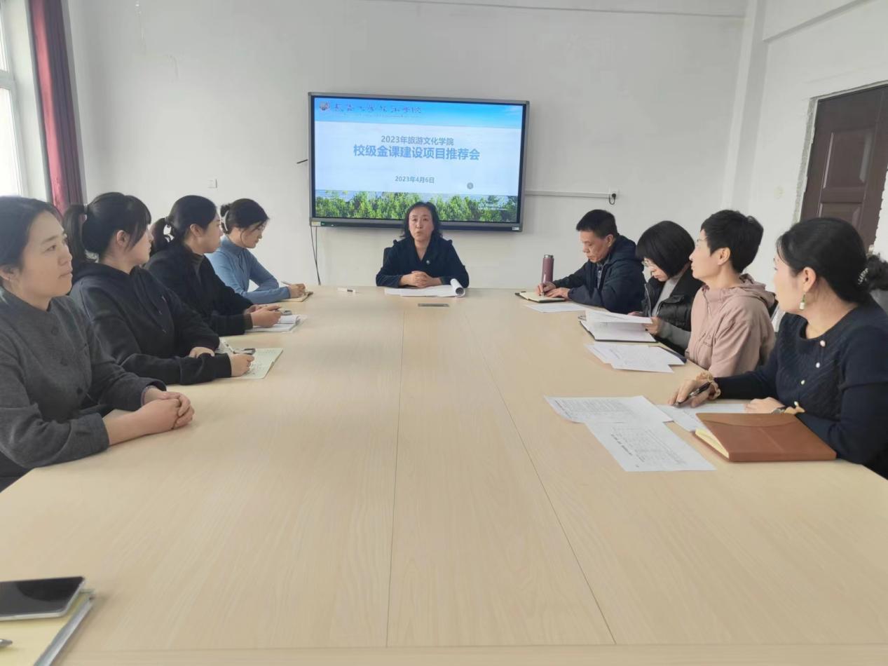 为促进信息技术与教育教学深度融合,提高人才培养质量,旅游文化学院按照学校“金课”建设项目遴选工作要求,于4月6日下午在综合楼211会议室召开旅游文化学院2023校级金课建设项目推荐会,推荐组由学院副院长王兴华和专业带头人杨春梅、麻松、蔡维英、张春城组成。推荐会由周丽君副院长主持。