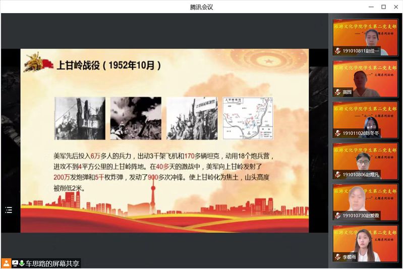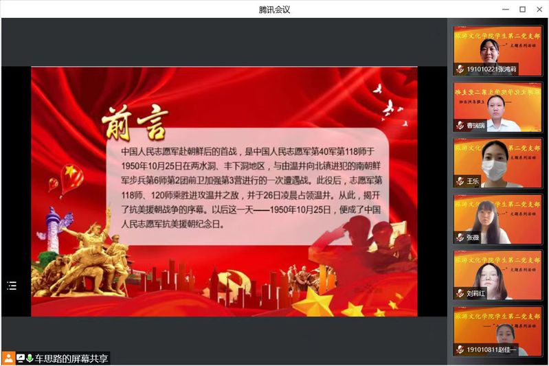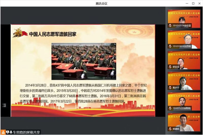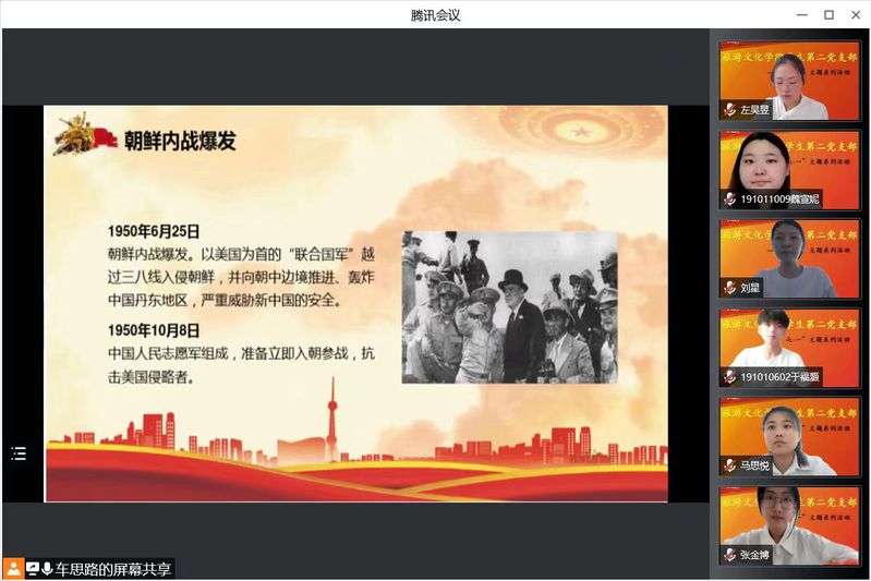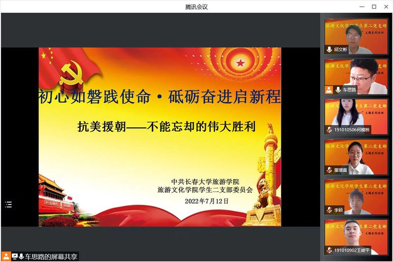为庆祝中国共产党成立101周年,学习党的光辉历程,缅怀革命先烈,传承红色精神,7月12日旅游文化学院学生第二党支部利用专业知识,开展“抗美援朝-不能忘却的伟大胜利”的红色讲解主题党日活动,激励党员在新时代新征程上披荆斩棘、奋勇前进。