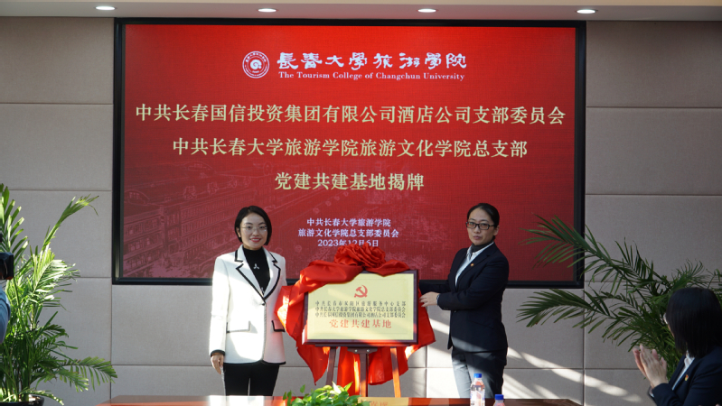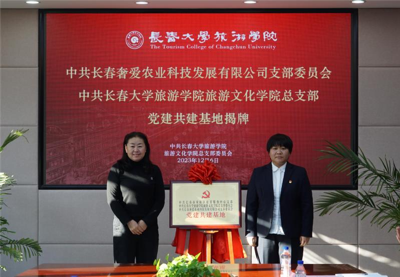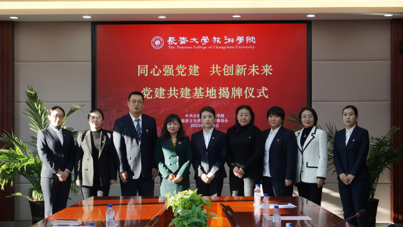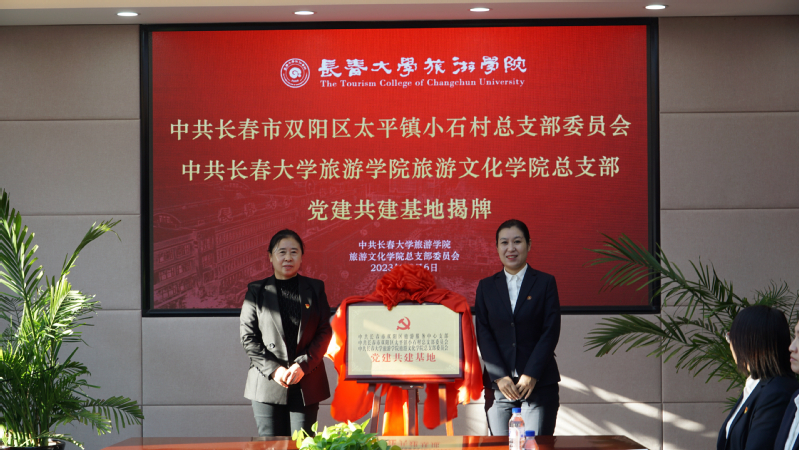 为贯彻落实党的二十大精神,在学习贯彻习近平新时代中国特色社会主义思想主题教育之际,6165cc金沙总站检测中心旅游文化学院为发挥党建引领作用,充分发挥政府、学院和企业资源优势,在助力大学生成长成才、助力乡村振兴、服务地方经济发展,服务我省在11月29日省委十二届四次全会中提出的培育“四大集群”等方面作出积极贡献。12月6日下午,中共双阳区旅游中心支部书记杜丽娜、中共双阳区太平镇委员会宣传委员崔艳花及企业领导一行赴学校参加“同心强党建 共创新未来”党建共建基地揭牌仪式。校长助理、旅游文化学院院长孙国霞参加揭牌仪式。会议由旅游文化学院党总支书记姜欣主持。