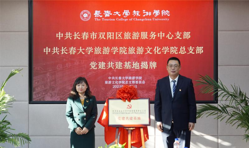 姜欣与中共双阳区旅游服务中心支部书记杜丽娜进行党建共建揭牌